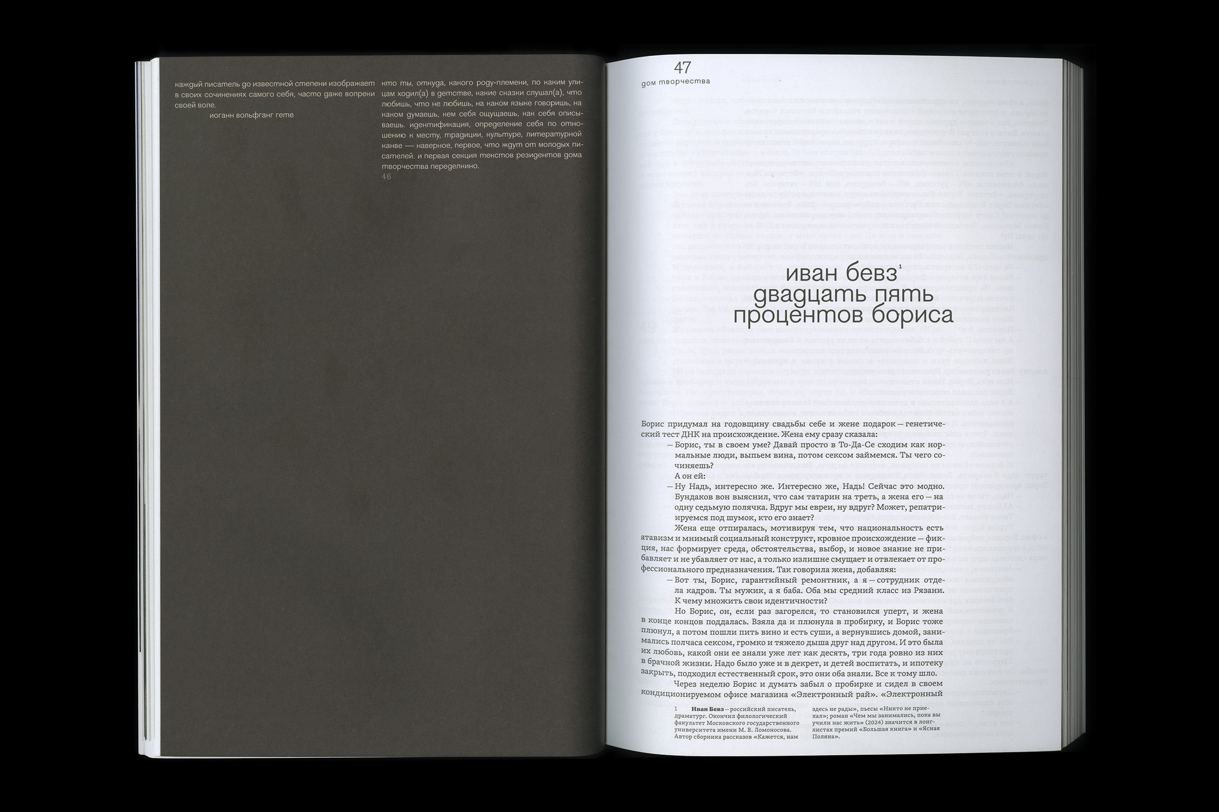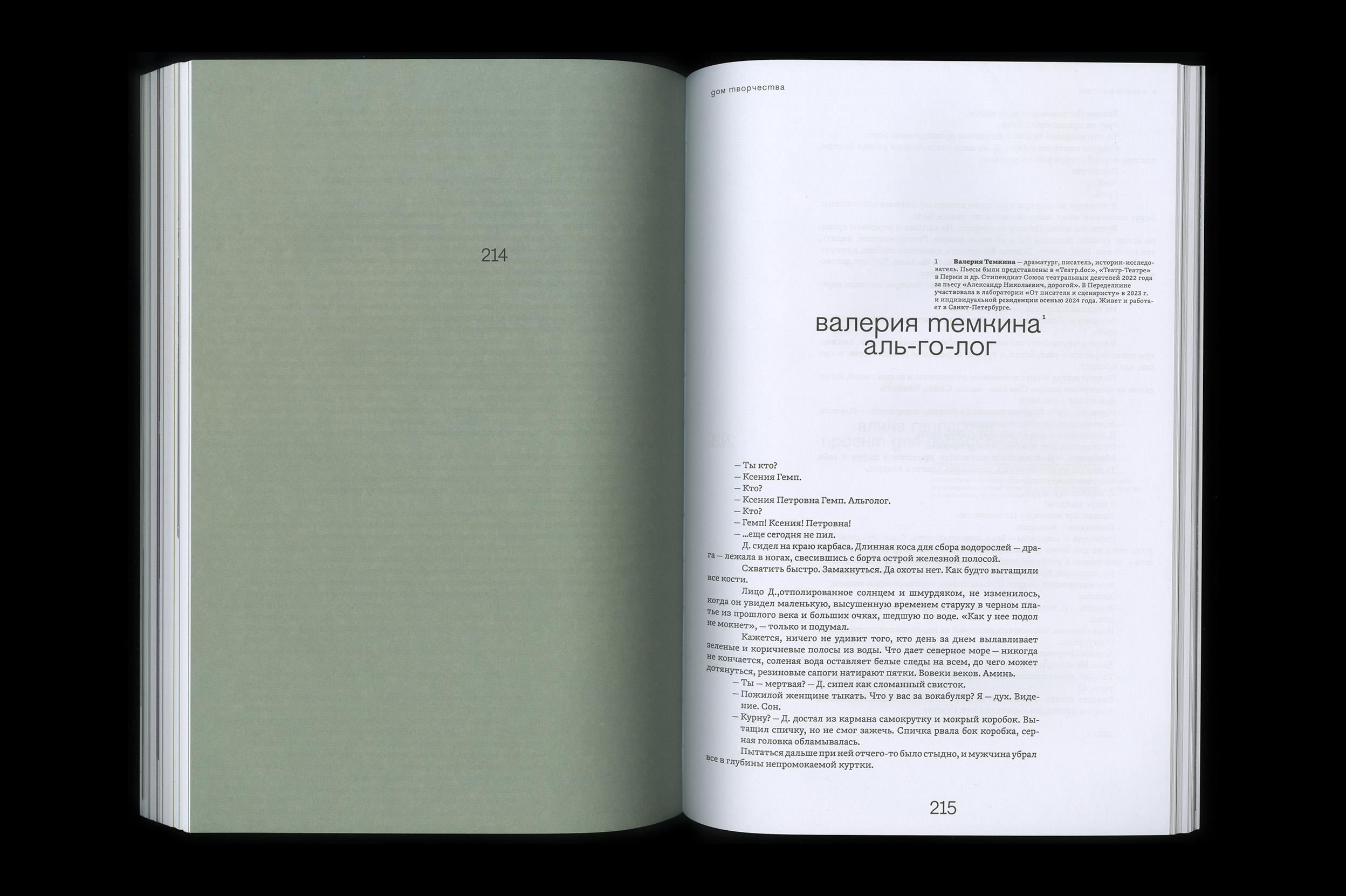 Tselinny Publishing. Almaty, 2021. 200 × 260 mm, 400 p., 1200 copie Paper: Stora Enso 65 GSM. Typefaces: KTF Rublena, Kommuna, Journal. Printed by Service Press in Almaty, Kazakhstan. ISBN 978–601–06–7425–7